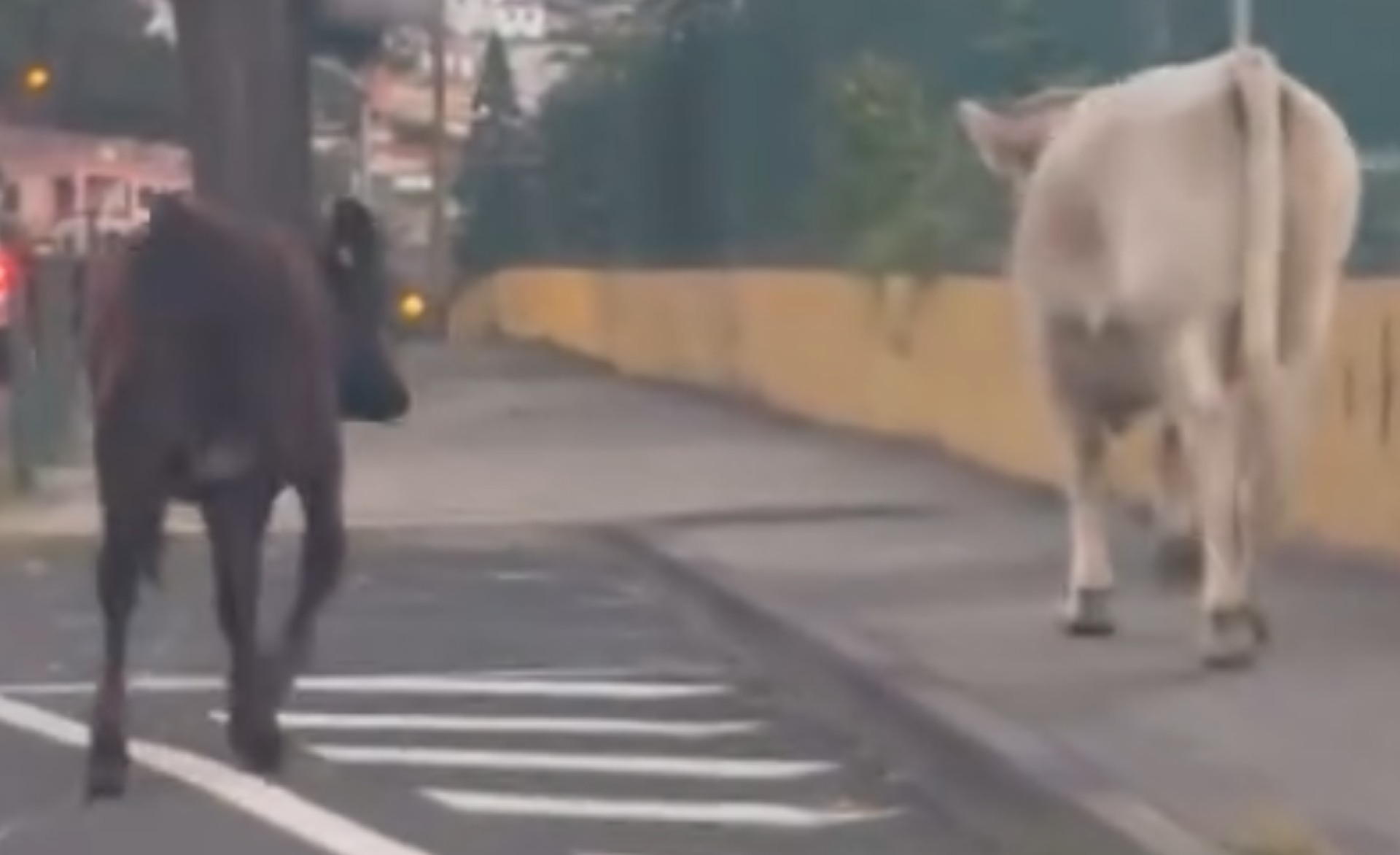 Duas vacas voltaram a passear pelas ruas de Santo António, mais concretamente, na Avenida das Madalenas.