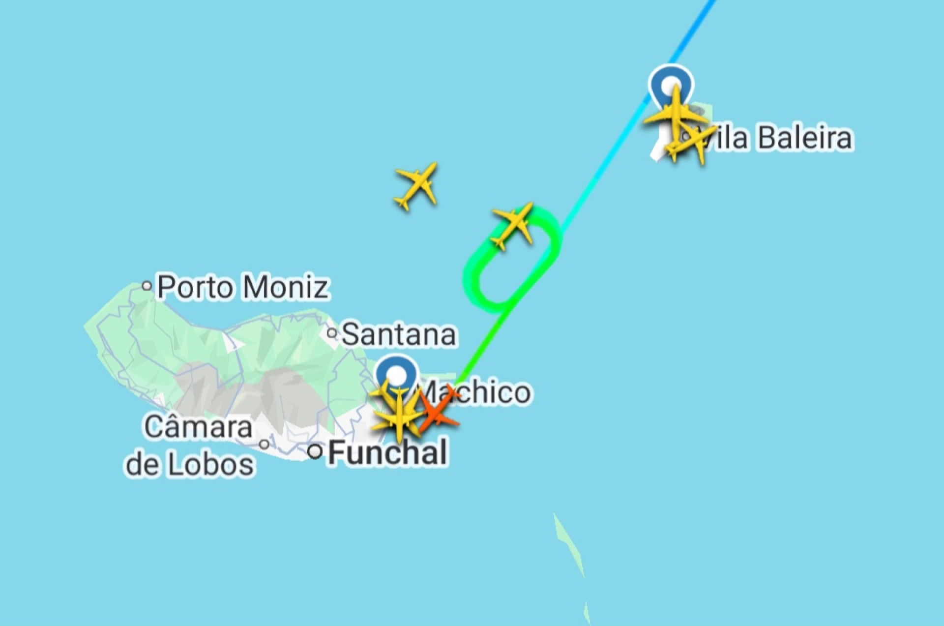 As imagens fornecidas pela plataforma Flight Radar mostram algumas aeronaves obrigadas a dar várias voltas à espera de melhores condições para a aterragem.