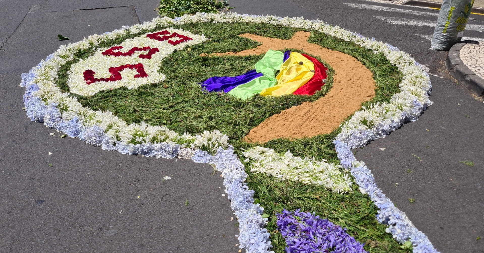Grupos de vários sítios da freguesia preparam os tradicionais tapetes de flores que percorrem as ruas ao redor da igreja.