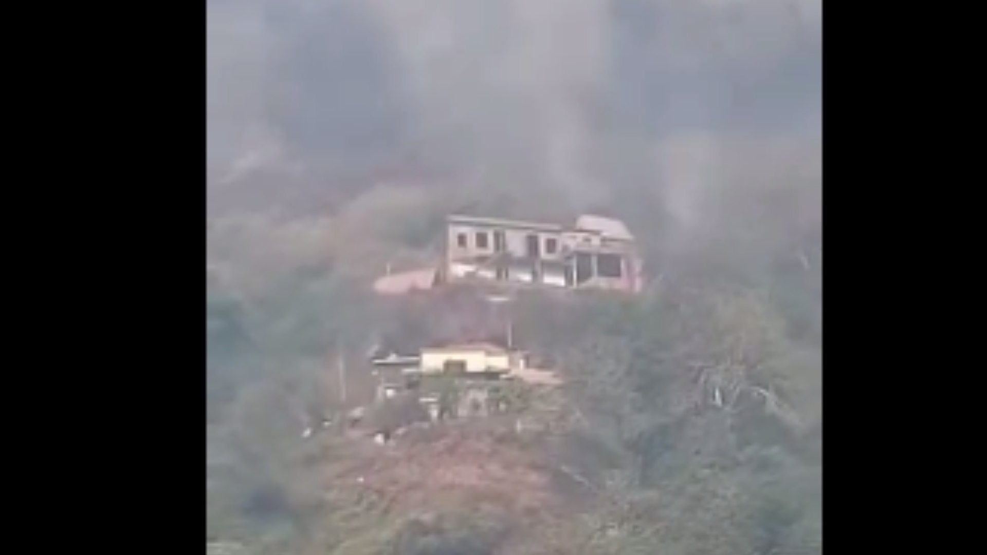O fogo está próximo a algumas casas, conforme ilustram as imagens partilhadas nas redes sociais.