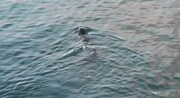 O momento, captado em vídeo, surpreendeu quem estava a mergulhar na zona.