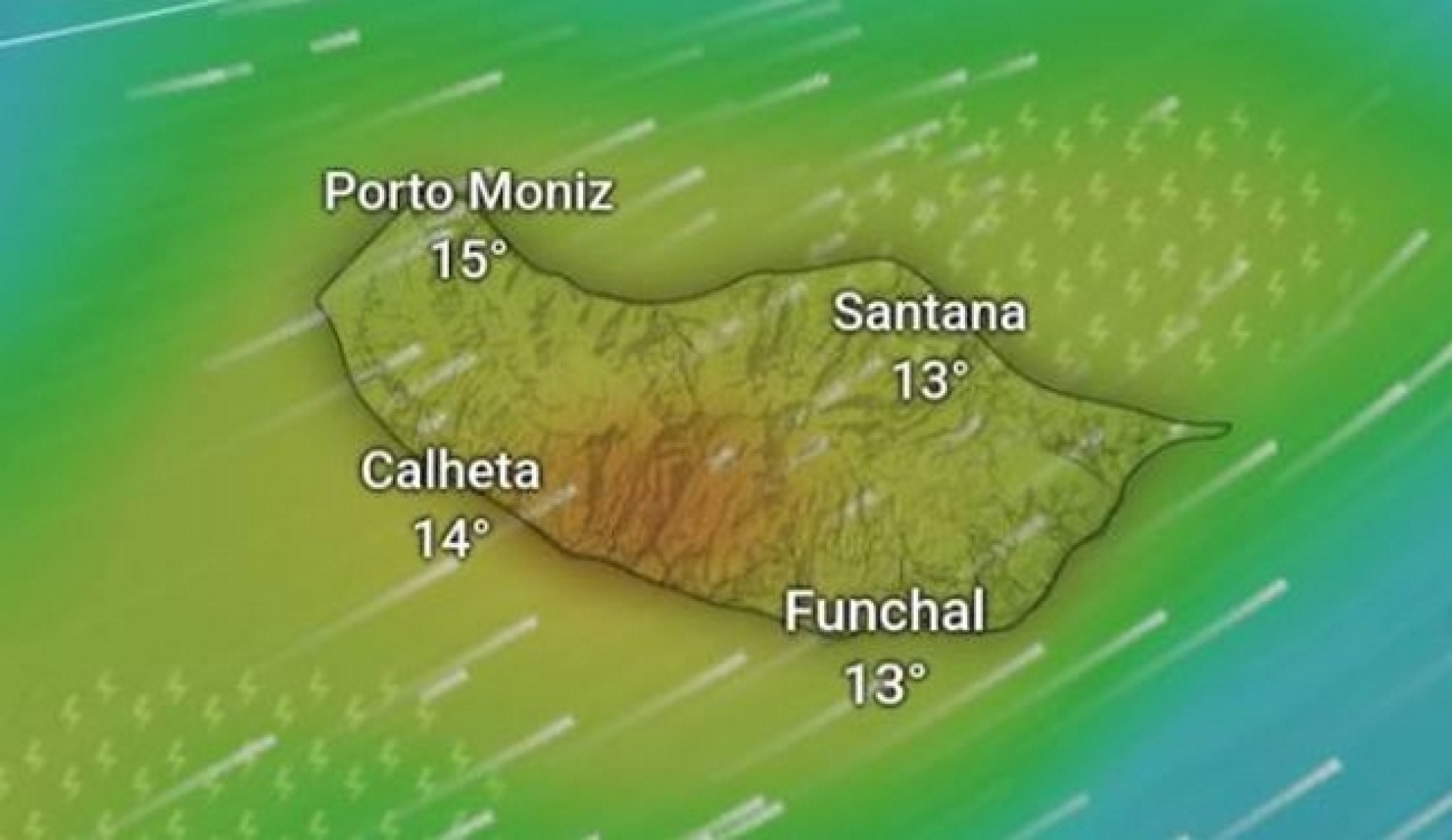Vento fraco a moderado (10 a 30 km/h) de oeste/sudoeste, soprando por vezes forte (até 40 km/h), com rajadas até 60 km/h.