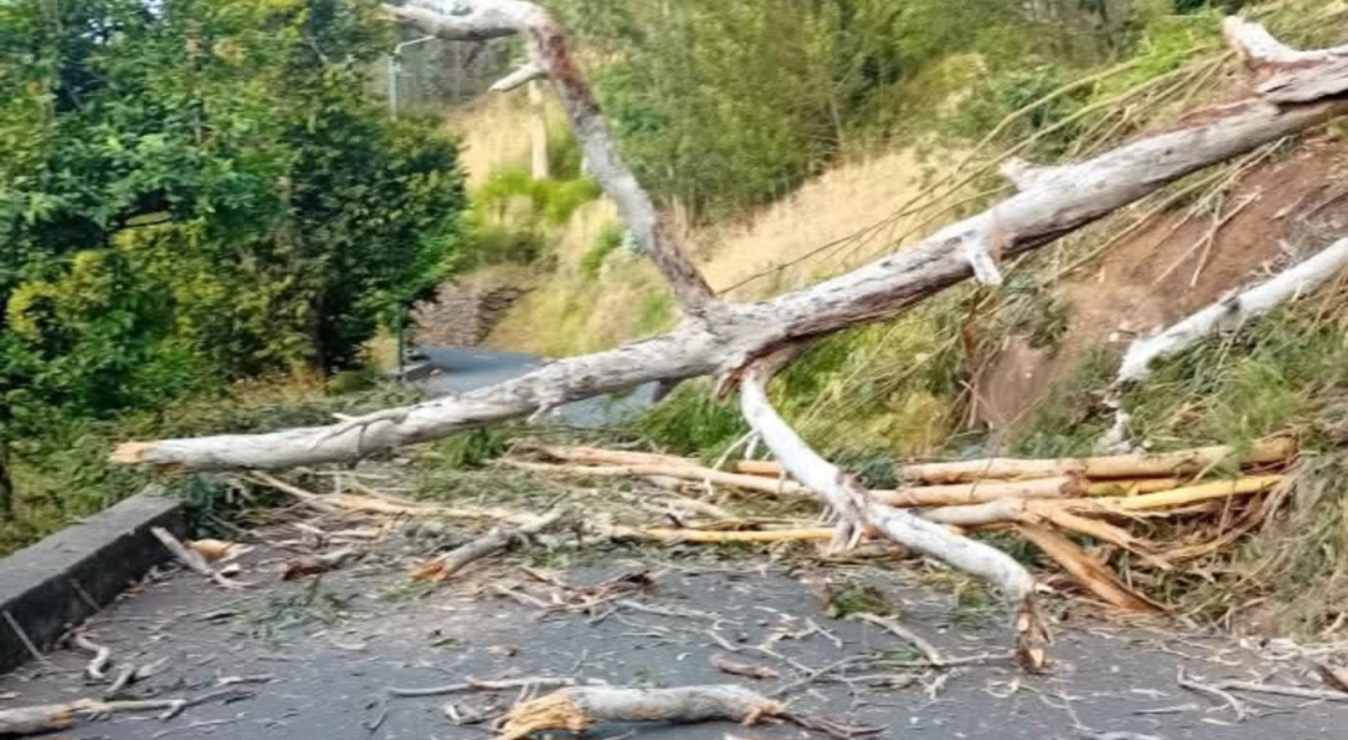 A queda de uma árvore fechou o acesso entre a Quinta Grande e o Cabo Girão, no Concelho de Câmara de Lobos.