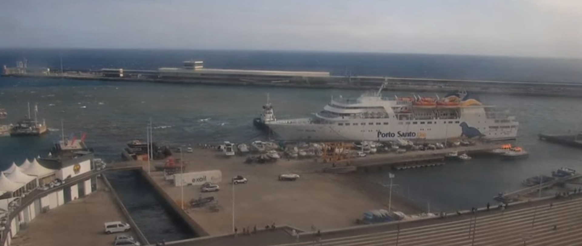 O navio Lobo Marinho está com dificuldade em atracar no Porto do Funchal.